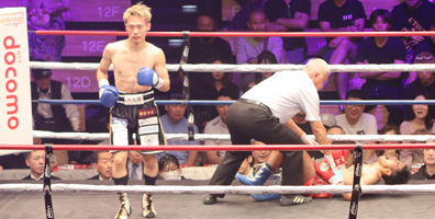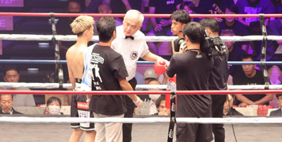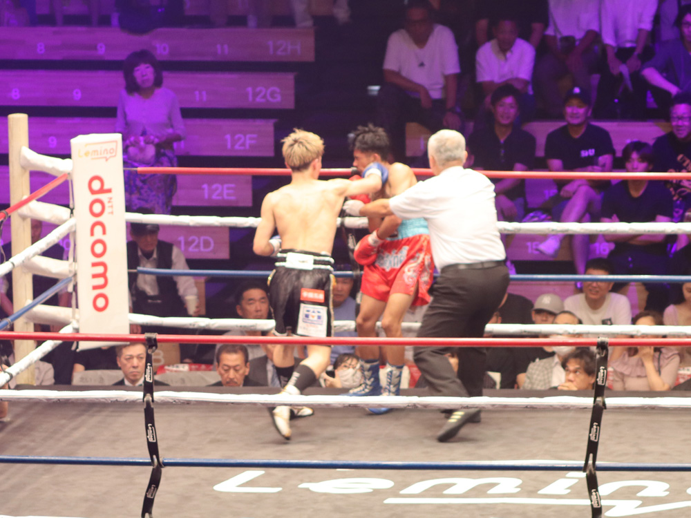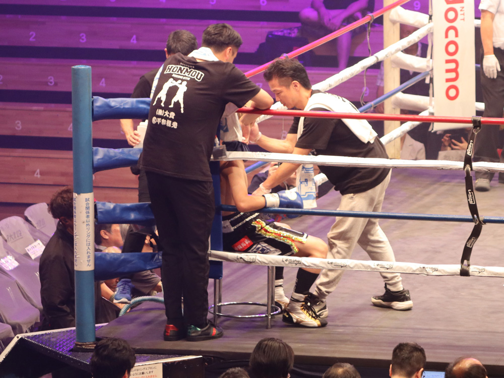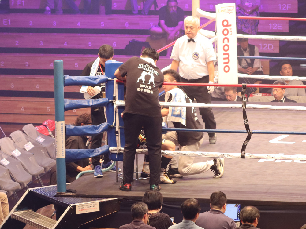 3R 1分18秒、ストップによるTKOでゴウの勝ちが決まった。