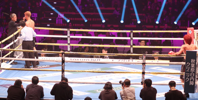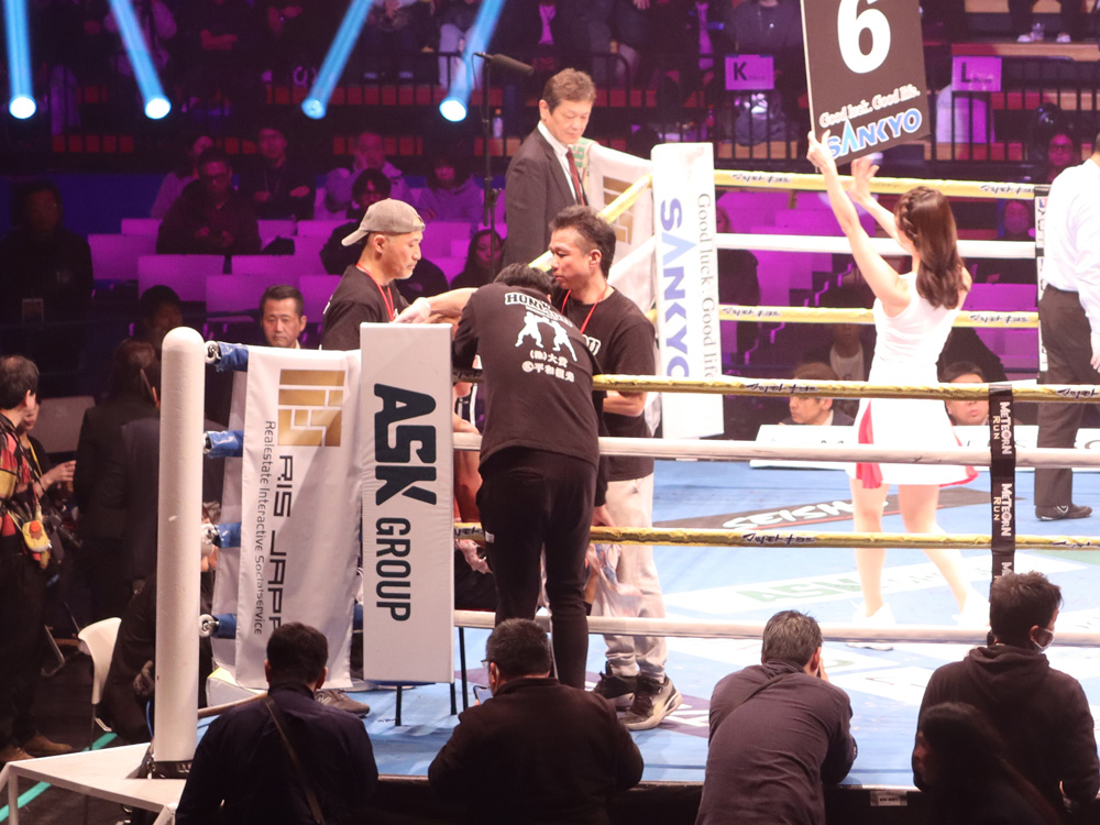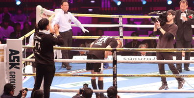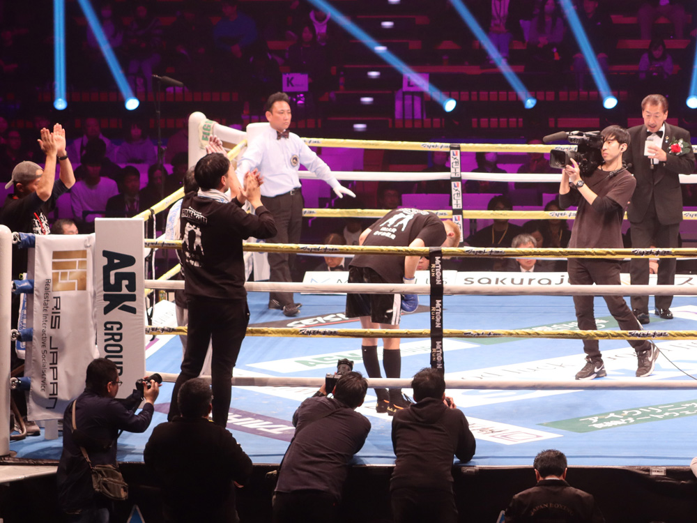 6R開始から50秒、駆け寄ったレフェリーが試合を止めた。