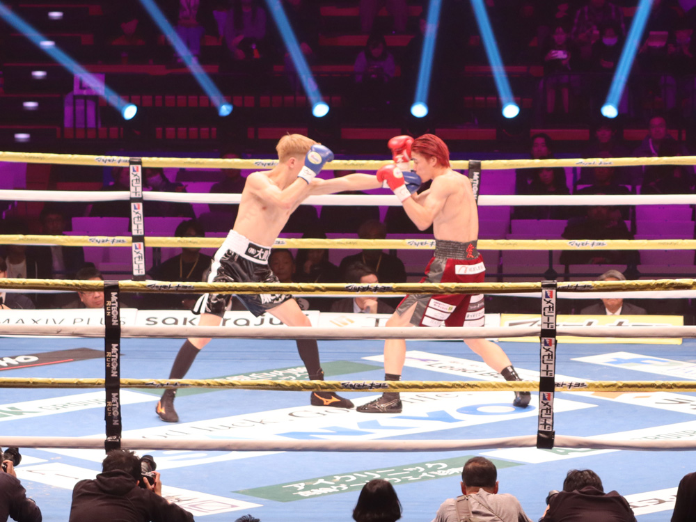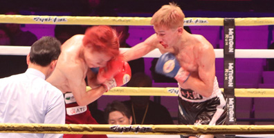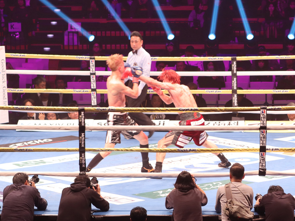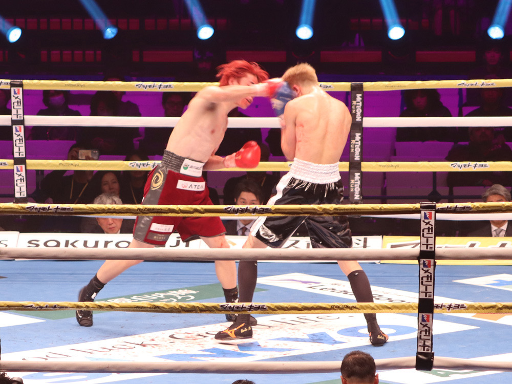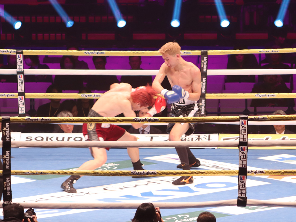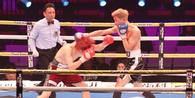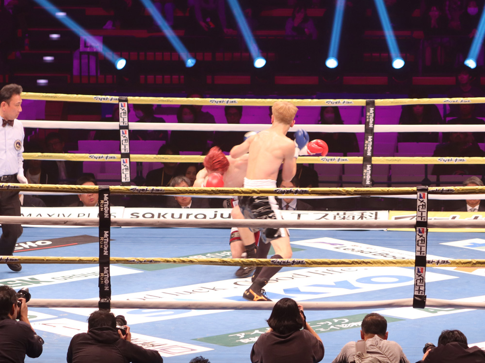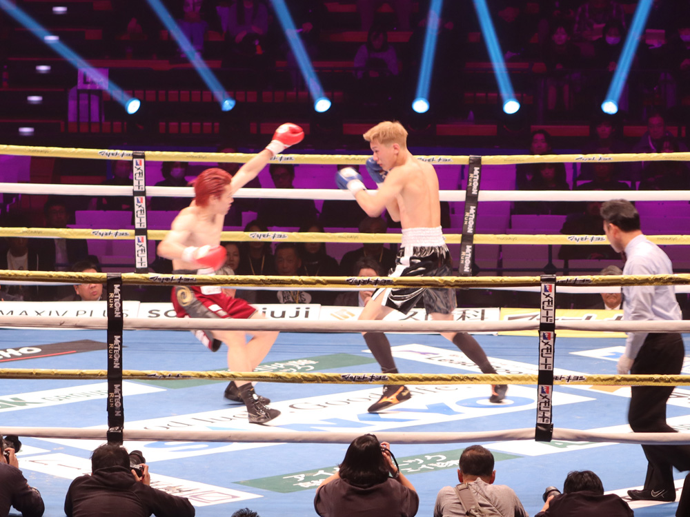 再開後、右ストレートから左フックの返しがクリーンヒット。