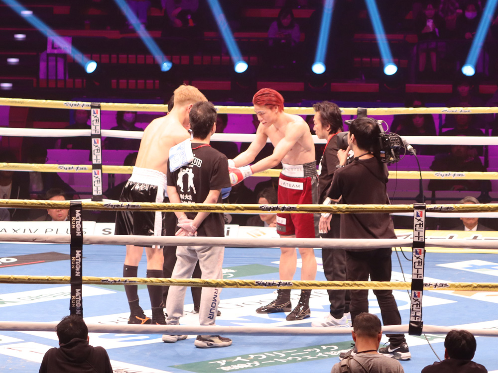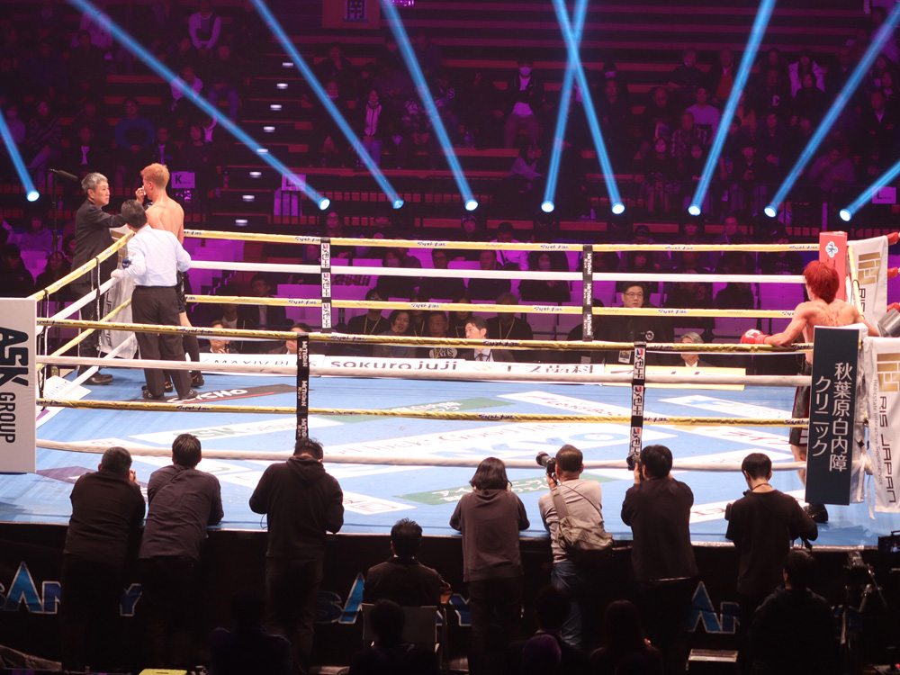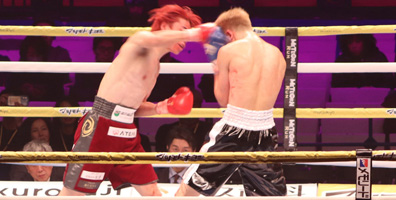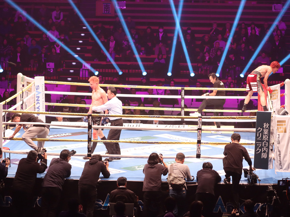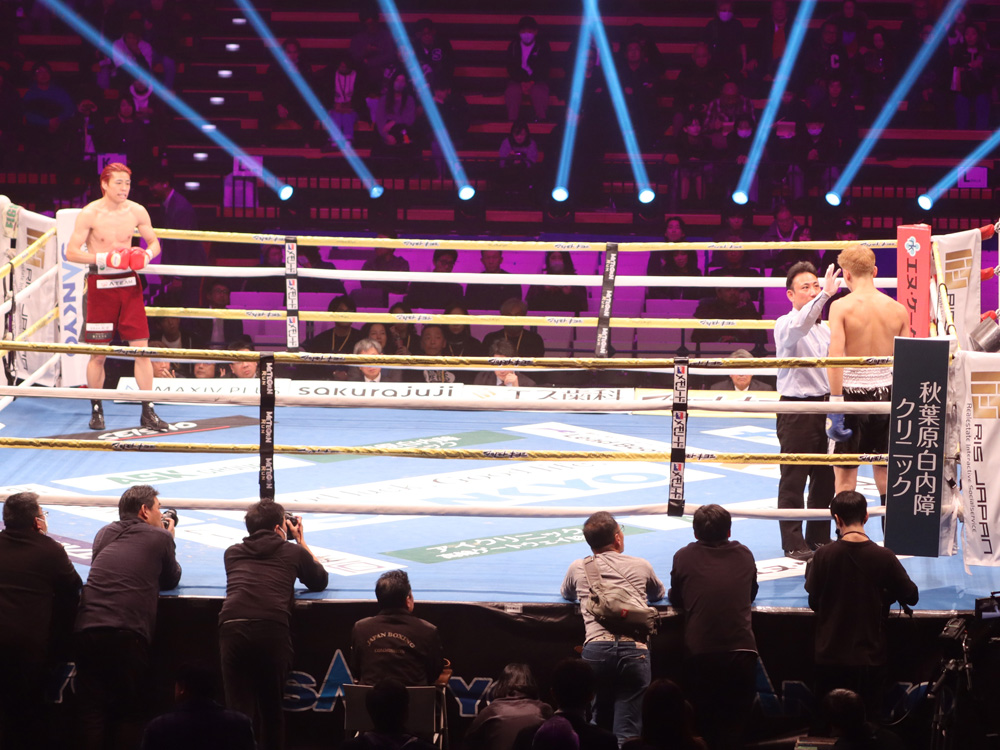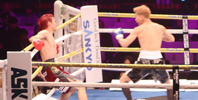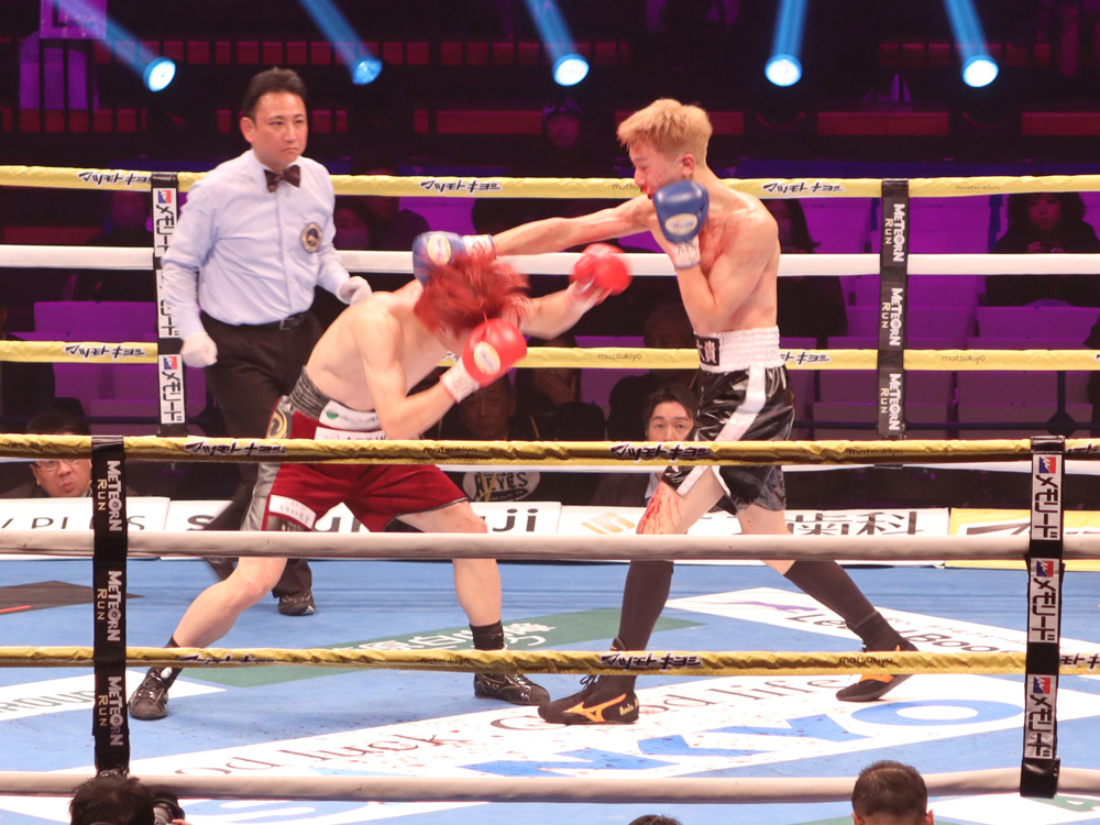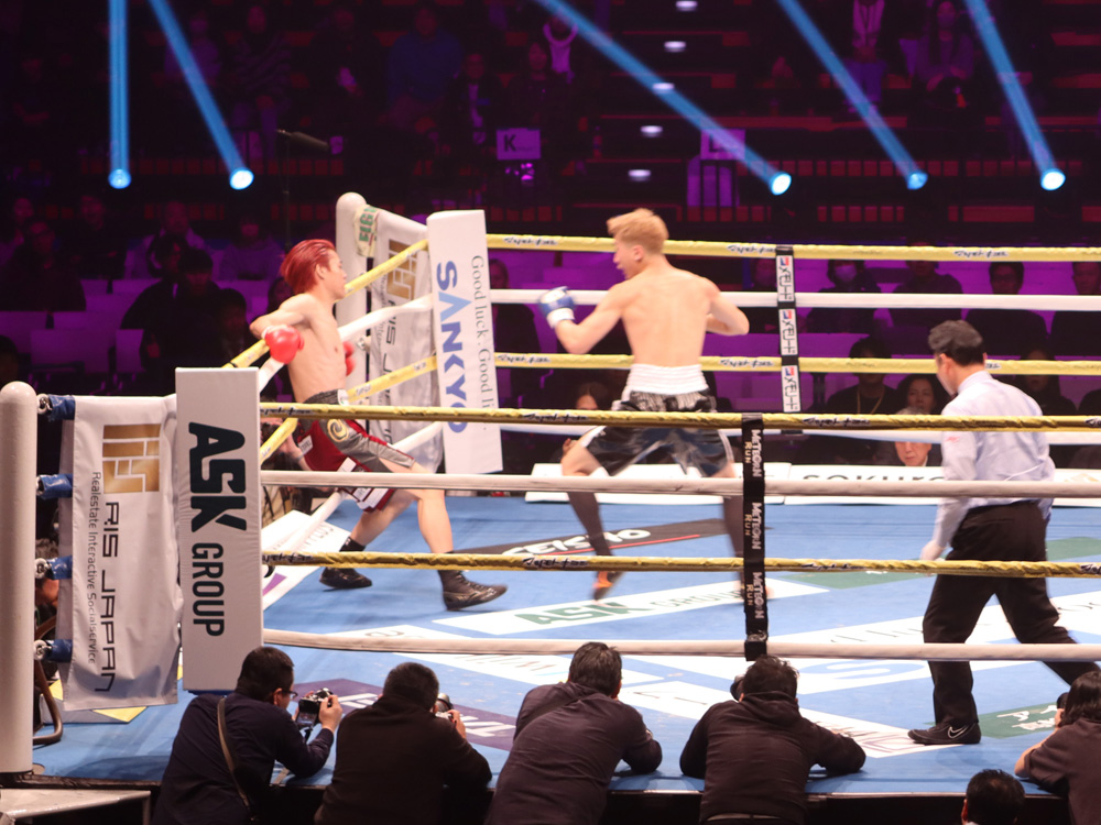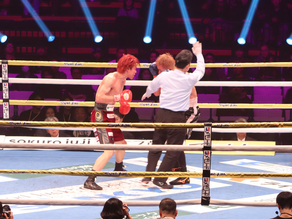 再開後、右ストレートから左フックの返しがクリーンヒット。