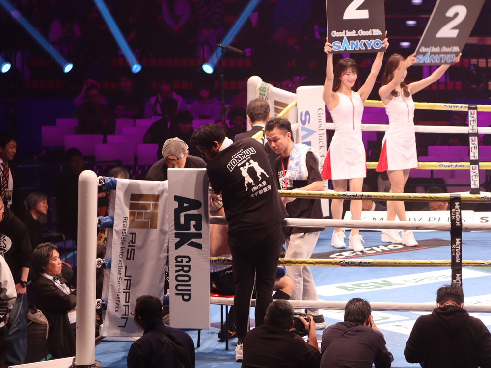 リングに入る両陣営セコンド。