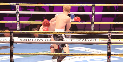 このラウンドでもタイミングよく放った右ストレートを当て、