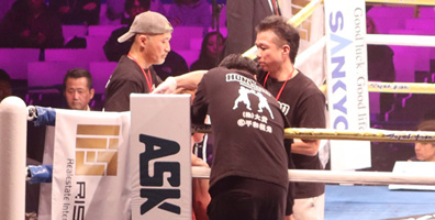 セコンドの坪根トレーナー、福田プロ。