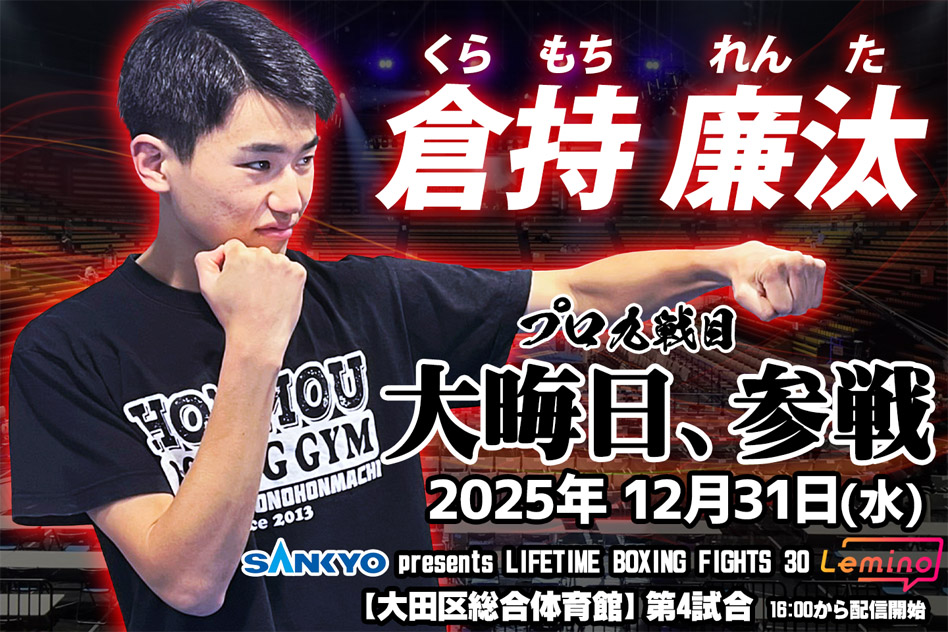 倉持 廉汰 選手のプロ9戦目となる試合の日程が決定いたしました!