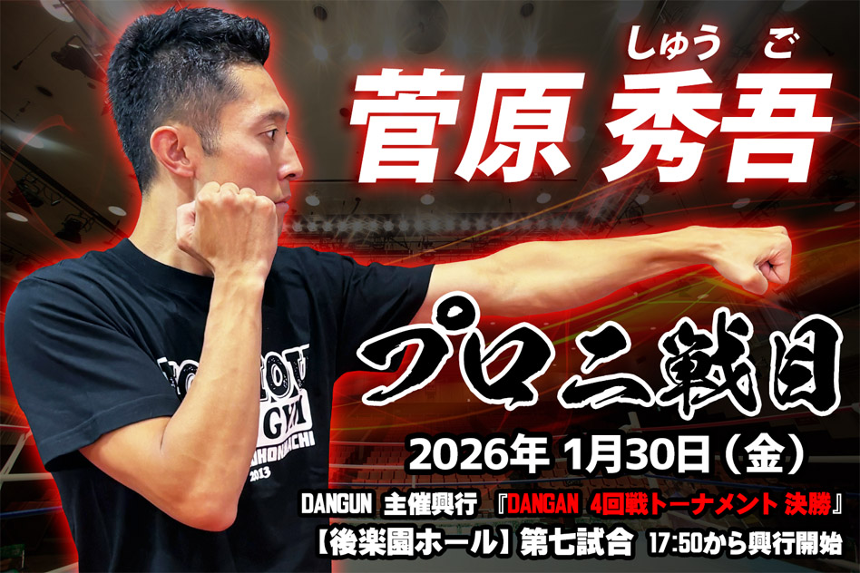 当ジムでは『シュン』の愛称で親しまれている 菅原 秀吾 選手がプロ2戦目に挑みます!
