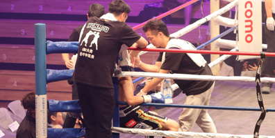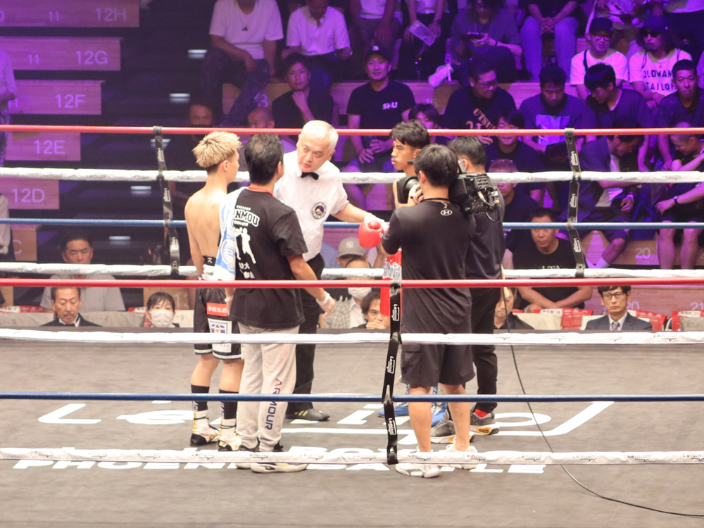 3R 1分18秒、ストップによるTKOでゴウの勝ちが決まった。