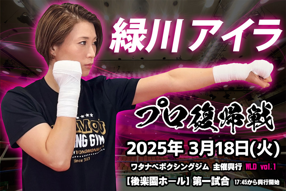 昨年より当ジムに移籍し、プロ復帰を目指していた 緑川 アイラ 選手の試合が決定いたしました!